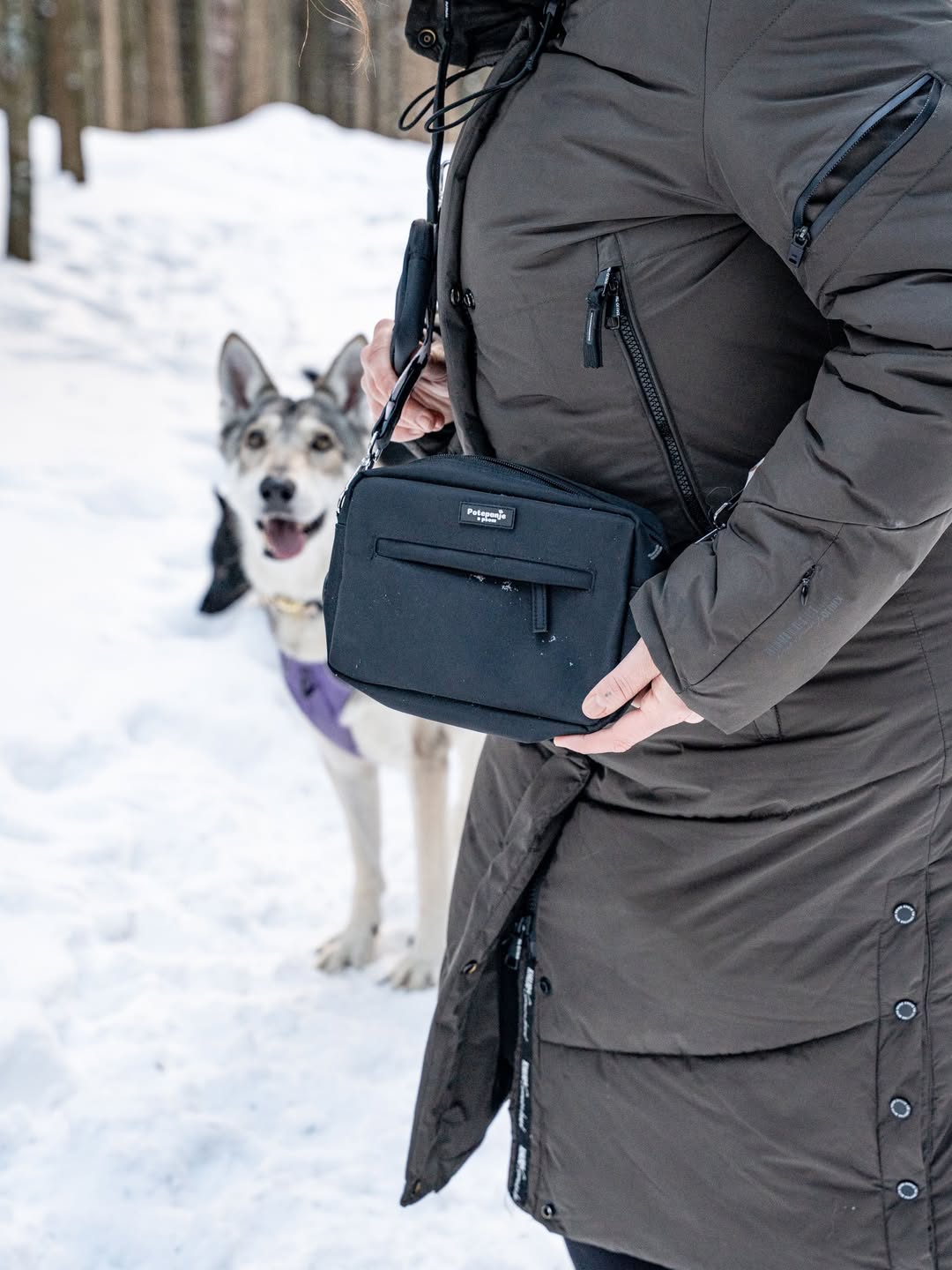 Dodaten prostor za osebne stvari – torbica ima ločene žepe, kamor lahko shranite ključe, telefon, vrečke za iztrebke ali druge malenkosti, ki jih potrebujete na poti.